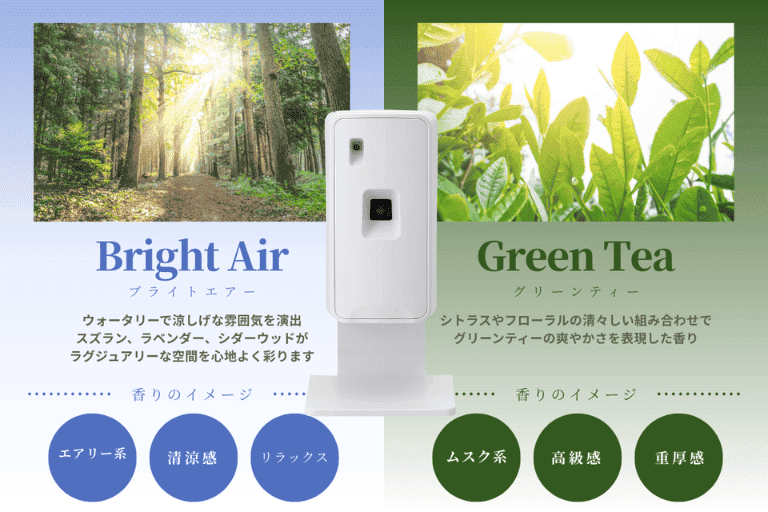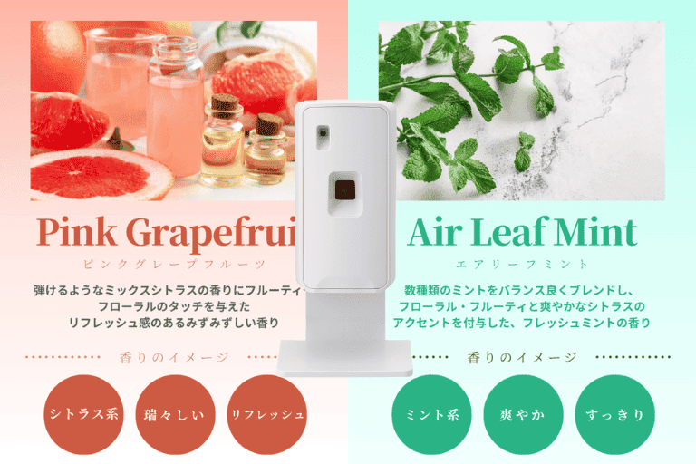 - 効果: 朝はリフレッシュできる柑橘系、午後は集中力を高めるハーブミント系など、働きやすい環境を作る「福利厚生」としても注目されています。